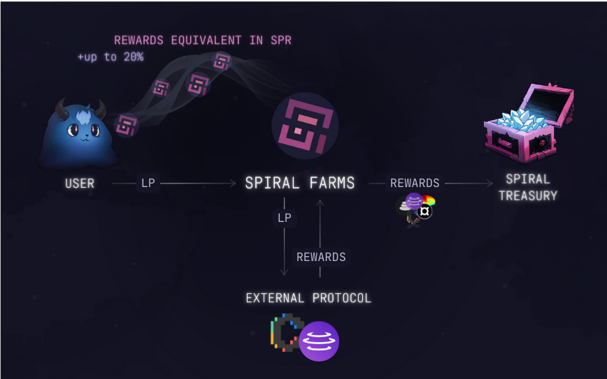 This allows the Spiral DAO protocol to build up its Treasury and TVL through issuing and bonding SPR rewards backed by real yield, which the protocol can also utilize to generate additional value for SPR holders.